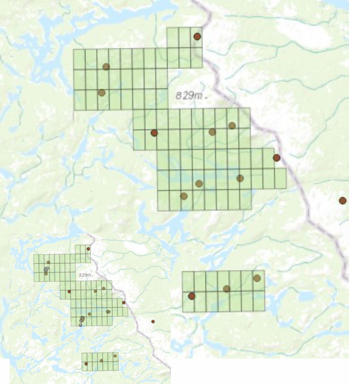 The Lac Lilois property is located roughly 150 km east of Caniapiscau Québec and roughly 20km NW from Schefferville Qc. Gold values ranging for 1 to 26 g/t on a 93 claim property, over 5 000 Ha. The property can be accessed through a series of bush roads coming in from Schefferville where there a also a landing strip.